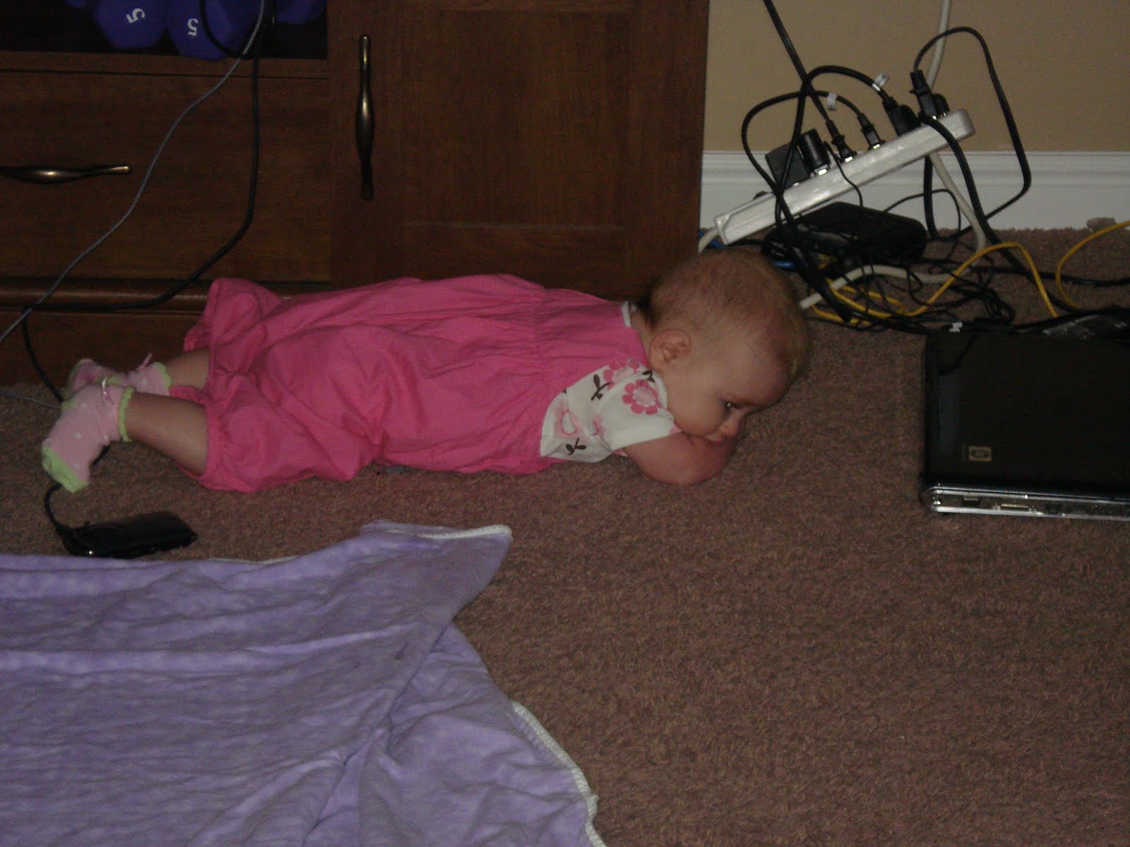 The other day she got stuck and got a little frustrated that she couldn't go any further, so she started calling for mommy. So I put her back on her blanket and in a few seconds she was stuck again. I don't know what I'm going to do with her. hehe